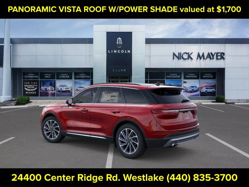 Nick Mayer Lincoln Westlake is proud to offer this fantastic-looking 2026 Lincoln Corsair in Red This vehicle has been thoroughly inspected, ready to take home, and comes with the following features; Equipment Group 101A Premiere II (2 Additional USB Ports (illuminated Types C and C) - Rear of Center Console, 60/40 EasyFold Rear Seat with Power Seatback Release, Alexa Built-In, Frameless Auto Dimming Rearview Mirror, Hands-Free Liftgate, Heated Steering Wheel, Heated/Ventilated Front Seats, Micro-Perforated Lincoln Soft Touch Front Captain's Chairs, Phone As A Key (PAAK), Power Tilt/Telescoping Steering Column with Memory, Radio: Lincoln Premium Audio System, Rain Sensing Wipers, Sideview Mirrors, SiriusXM with 360L, SYNC 4, Universal Garage Door Opener, Voice-Activated Connected Navigation - 4 Year Included Duration, Wheels: 18 Bright Machined Aluminum with Dark Tarnish Finish, Windshield Wiper De-Icer, and Wireless Charging Pad), Rear Removable Package Tray, 360-Degree Camera, 4-Wheel Disc Brakes, 9 Speakers, ABS brakes, Air Conditioning, All-Weather Floor Liners with Front and Rear Carpet Floor Mats, Alloy wheels, AM/FM radio: SiriusXM with 360L, Apple CarPlay/Android Auto, Auto High-beam Headlights, Auto-dimming Rear-View mirror, Automatic temperature control, Brake assist, Bumpers: body-color, Compass, Delay-off headlights, Driver door bin, Driver vanity mirror, Dual front impact airbags, Dual front side impact airbags, Electronic Stability Control, Emergency communication system: 911 Assist, Four wheel independent suspension, Front anti-roll bar, Front Bucket Seats, Front Center Armrest, Front dual zone A/C, Front Parking Sensors, Front reading lights, Fully automatic headlights, Heated door mirrors, Heated front seats, Illuminated entry, Knee airbag, Leather steering wheel, Lincoln Soft Touch Front Captain's Chairs, Low tire pressure warning, Memory seat, Navigation system: Connected Navigation (4-year trial), Occupant sensing airbag, Outside temperature display, Overhead airbag, Overhead console, Panic alarm, Panoramic Vista Roof with Power Shade, Passenger door bin, Passenger vanity mirror, Post-Collision Braking, Power door mirrors, Power driver seat, Power Liftgate, Power passenger seat, Power steering, Power windows, Radio data system, Rear anti-roll bar, Rear Parking Sensors, Rear reading lights, Rear seat center armrest, Rear window defroster, Rear window wiper, Remote keyless entry, Reverse Brake Assist, Security system, Speed control, Speed-sensing steering, Speed-Sensitive Wipers, Split folding rear seat, Spoiler, Steering wheel mounted A/C controls, Steering wheel mounted audio controls, Tachometer, Telescoping steering wheel, Tilt steering wheel, Traction control, Trip computer, Variably intermittent wipers, Wheels: 18 Warm Alloy-Painted, and Wheels: 19 Bright Machined Aluminum with Dark Tarnish Premium Paint.