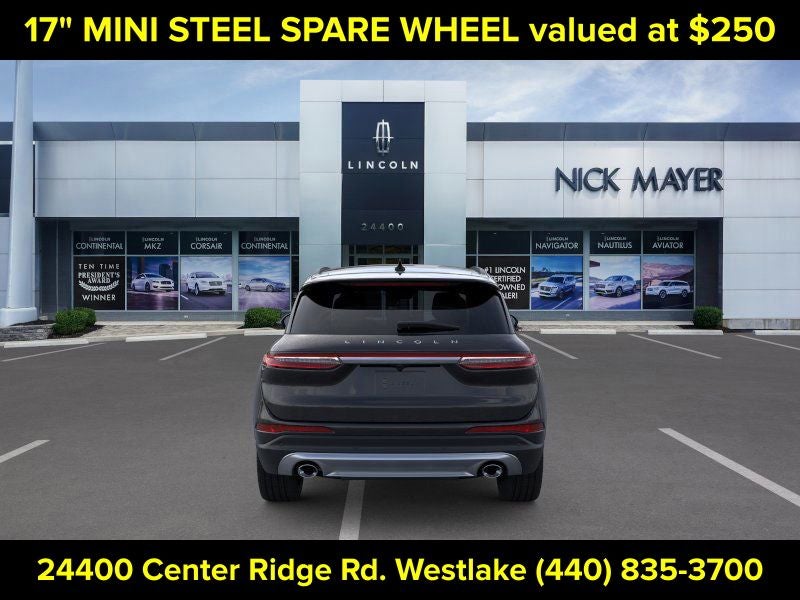 Nick Mayer Lincoln Westlake is proud to offer this fantastic 2026 Lincoln Corsair in Infinite Black Metallic Clearcoat This vehicle has been thoroughly inspected, ready to take home, and comes with the following features; Equipment Group 201A (2 Additional USB Ports in Rear of Center Console, 60/40 EasyFold Rear Seat w/Power Seatback Release, Frameless Auto Dimming Rearview Mirror, Hands-Free Liftgate, Heated Sideview Mirrors, Heated Steering Wheel, Heated/Ventilated Driver & Front Passenger Seats, Phone As A Key (PAAK), Power Tilt/Telescoping Steering Column w/Memory, Rain Sensing Wipers, Universal Garage Door Opener, Windshield Wiper De-Icer, and Wireless Charging Pad), 19 Bright Machined Aluminum Wheels, 360-Degree Camera, 4-Wheel Disc Brakes, 9 Speakers, ABS brakes, Air Conditioning, Alexa Built-In, All-Weather Floor Liners w/Fr&Rr Carpet Floor Mats, Alloy wheels, AM/FM radio: SiriusXM with 360L, Apple CarPlay/Android Auto, Auto High-beam Headlights, Auto-dimming Rear-View mirror, Automatic temperature control, Brake assist, Bumpers: body-color, Compass, Delay-off headlights, Driver door bin, Driver vanity mirror, Dual front impact airbags, Dual front side impact airbags, Electronic Stability Control, Emergency communication system: 911 Assist, Exterior Parking Camera Rear, Four wheel independent suspension, Front anti-roll bar, Front Bucket Seats, Front Center Armrest, Front dual zone A/C, Front Parking Sensors, Front reading lights, Fully automatic headlights, Heated door mirrors, Heated front seats, Illuminated entry, Knee airbag, Leather steering wheel, Low tire pressure warning, Memory seat, Navigation system: Connected Navigation (4-year trial), Occupant sensing airbag, Outside temperature display, Overhead airbag, Overhead console, Panic alarm, Panoramic Vista Roof w/Power Shade, Passenger door bin, Passenger vanity mirror, Post-Collision Braking, Power door mirrors, Power driver seat, Power Liftgate, Power passenger seat, Power steering, Power windows, Premium Leather-Trimmed Heated Captain's Chairs, Radio data system, Radio: Lincoln Premium Audio System w/MP3, Rear anti-roll bar, Rear Parking Sensors, Rear reading lights, Rear seat center armrest, Rear window defroster, Rear window wiper, Remote keyless entry, Reverse Brake Assist, Security system, SiriusXM w/360L Radio, Speed control, Speed-sensing steering, Speed-Sensitive Wipers, Split folding rear seat, Spoiler, Steering wheel mounted A/C controls, Steering wheel mounted audio controls, SYNC 4 Communications & Entertainment System, Tachometer, Telescoping steering wheel, Tilt steering wheel, Traction control, Trip computer, Variably intermittent wipers, and Wheels: 20 Bright Machined Aluminum.