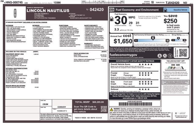 Recent Arrival! Factory MSRP: $69,205 2026 Lincoln Nautilus Premiere Gray Matter Metallic Clearcoat AWD CVT 2.0L GTDI FHEV 2.0L GTDI FHEV.
