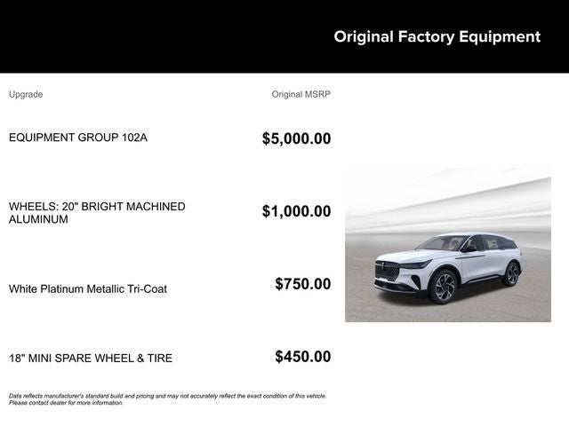 All prices exclude estimated taxes, title, licensing, and some dealer fees. Payments include $387 dealer fee. Available to well-qualified buyers on approved credit by Lincoln AFS. Not all buyers may qualify. Offer assumes 10% down payment. $14.09 per Month per $1,000 Financed at 4.9% APR for 84 months. Please see dealer for details. Offer expires on 3/31/2026 12:00:00 AM.