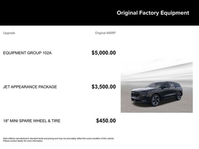 All prices exclude estimated taxes, title, licensing, and some dealer fees. Payments include $387 dealer fee. Available to well-qualified buyers on approved credit by Lincoln AFS. Not all buyers may qualify. Offer assumes 10% down payment. $14.09 per Month per $1,000 Financed at 4.9% APR for 84 months. Please see dealer for details. Offer expires on 3/31/2026 12:00:00 AM.