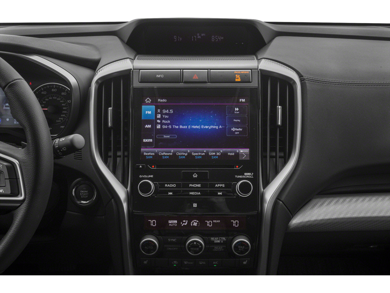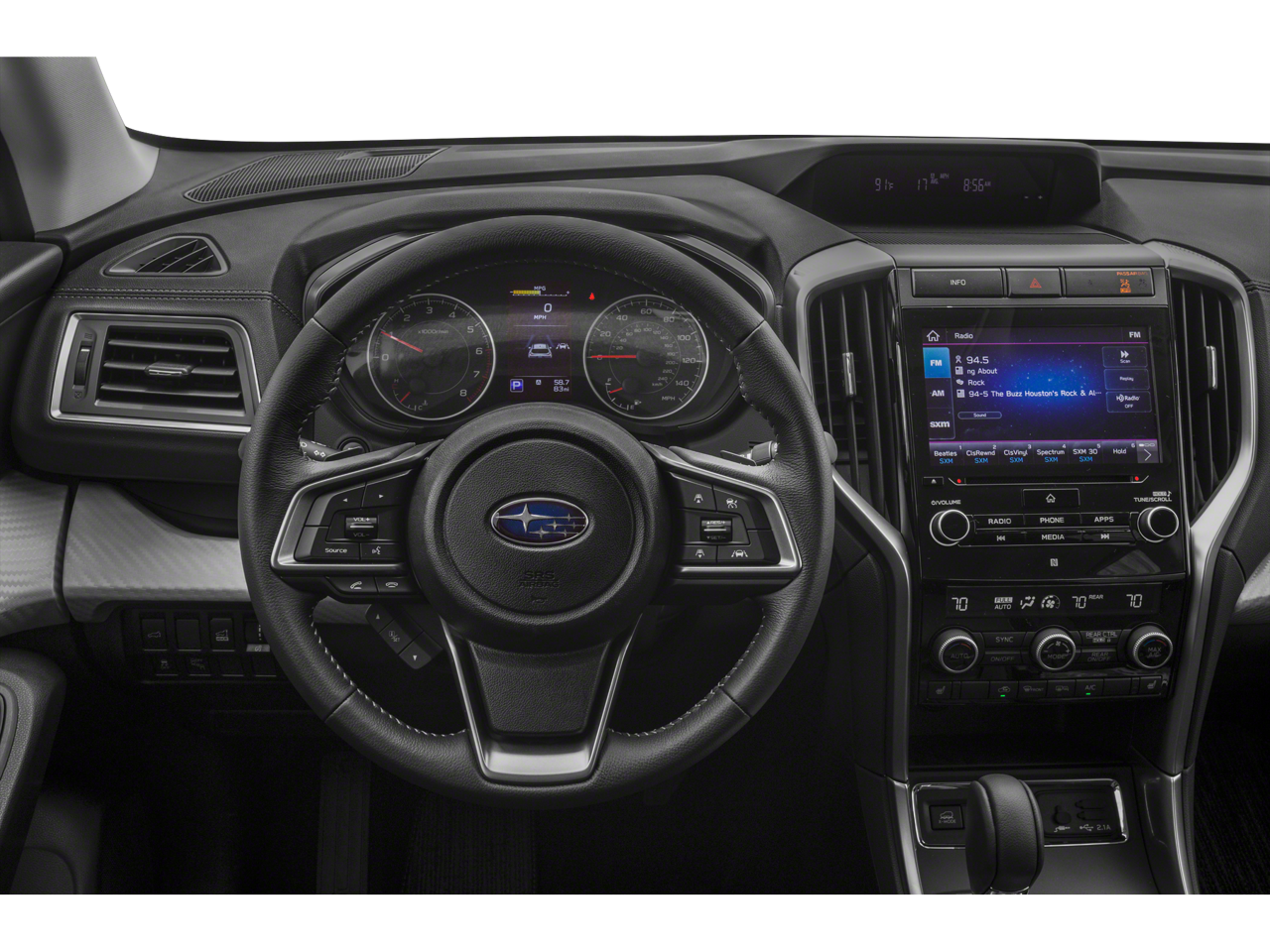 - Radio: Subaru STARLINK 8.0" Multimedia Plus System -inc: AM/FM stereo HD Radio w/single disc CD player, MP3/WMA/CRR/RW file capability, multi-touch gesture high resolution LCD display screen, voice activated controls, Bluetooth audio streaming connectivity, Bluetooth hands-free phone connectivity, Bluetooth hands-free SMS text messaging connectivity (applicable w/compatible cell phone), Near Field Communication (NFC), iPod control capability, SiriusXM All Access radio (subscription required), SiriusXM Travel Link (subscription required), smartphone integration for Aha, Android Auto, CarPlay and Pandora, STARLINK cloud applications, steering wheel controls for audio and Bluetooth, 6 speakers, 3.5mm auxiliary input jack and front and rear dual USB ports