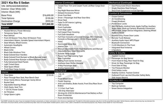 2021 Kia Rio S