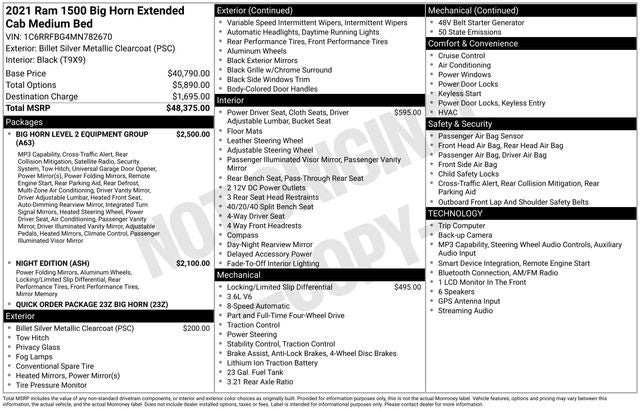 This well-equipped 2021 Ram 1500 Big Horn/Lone Star is the perfect blend of capability, technology, and style. Experience the difference for yourself - schedule a test drive today!